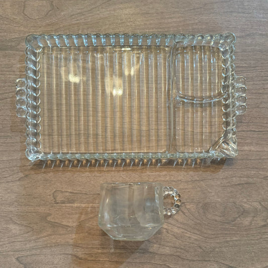 1950s Hazel Atlas Ball & Rib Glass Sip N Smoke Luncheon Snack Tray Vintage (2pc set)