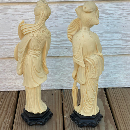 Pair of vintage oriental alabaster resin sculptures