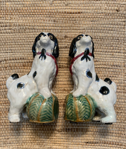 Pair of Majolica Staffordshire Spaniel Dog Bookend