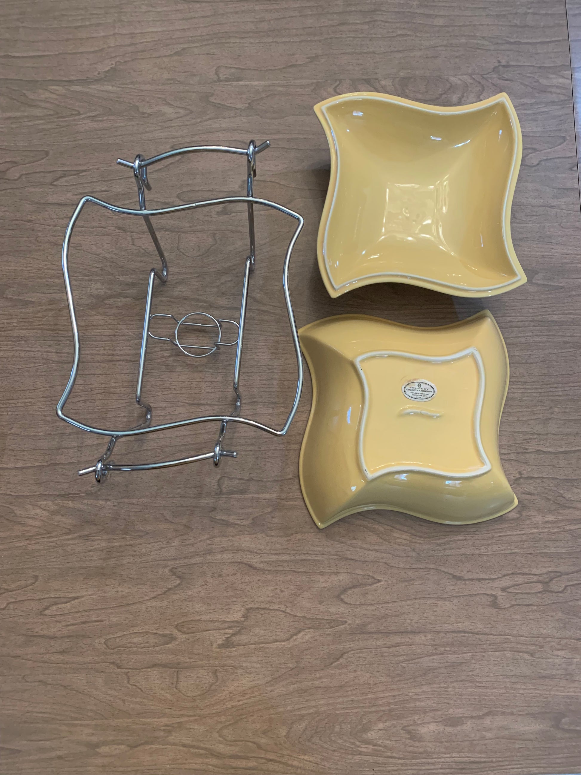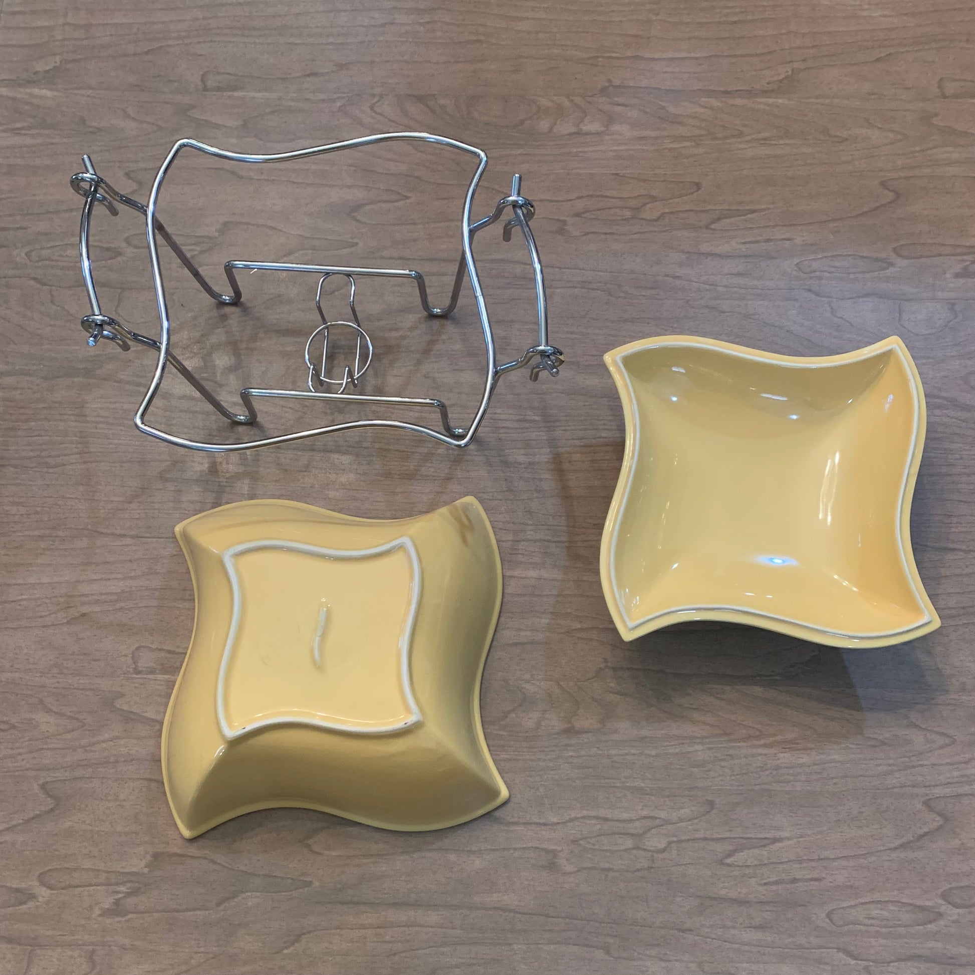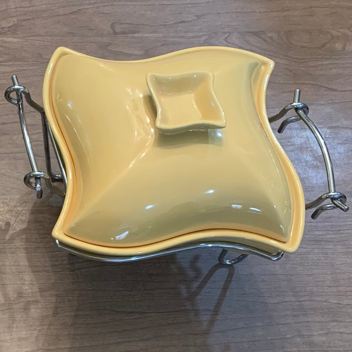 Godinger yellow Porcelain 1 Quart Baker/Chafing Dish with Chrome Warmer Stand