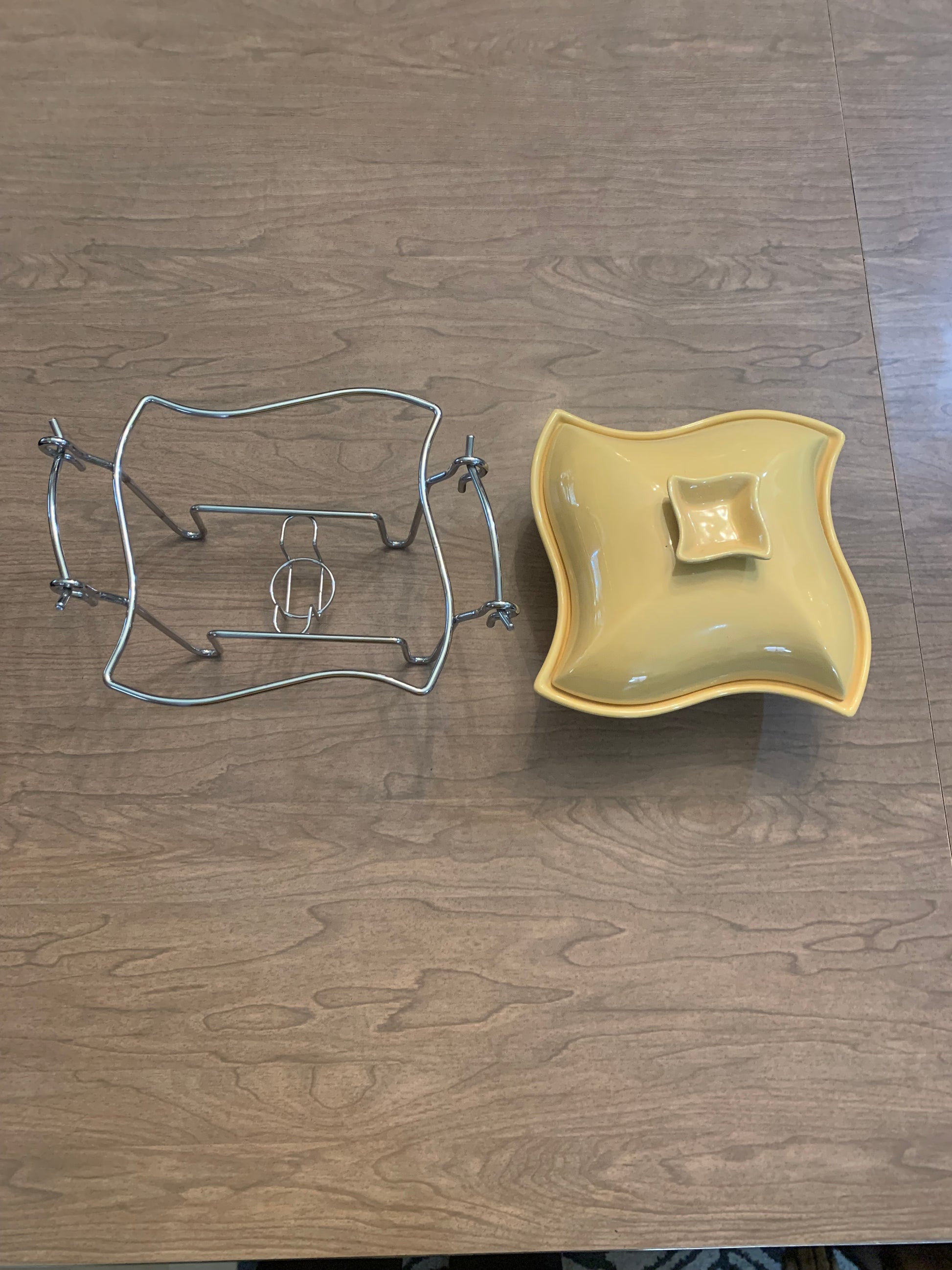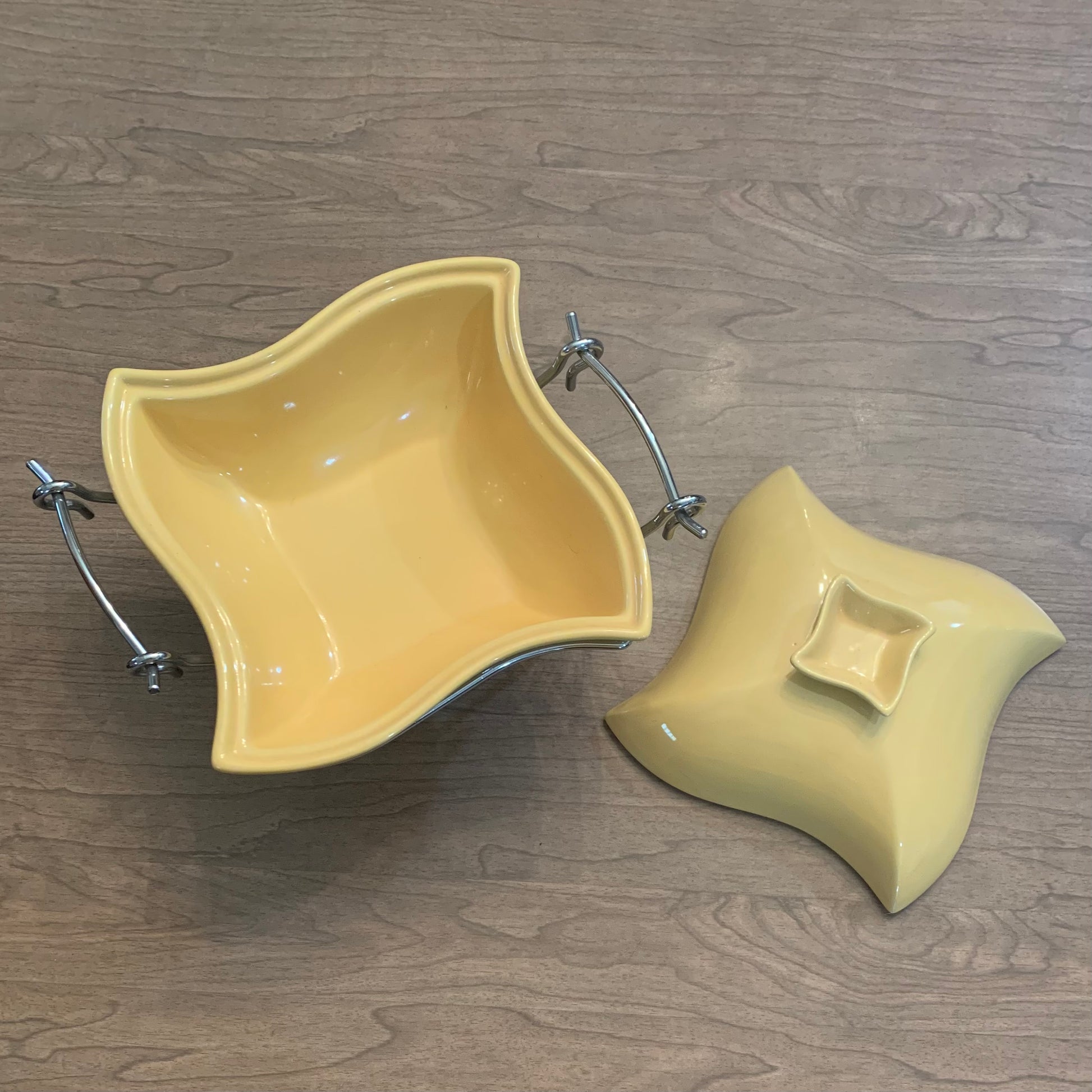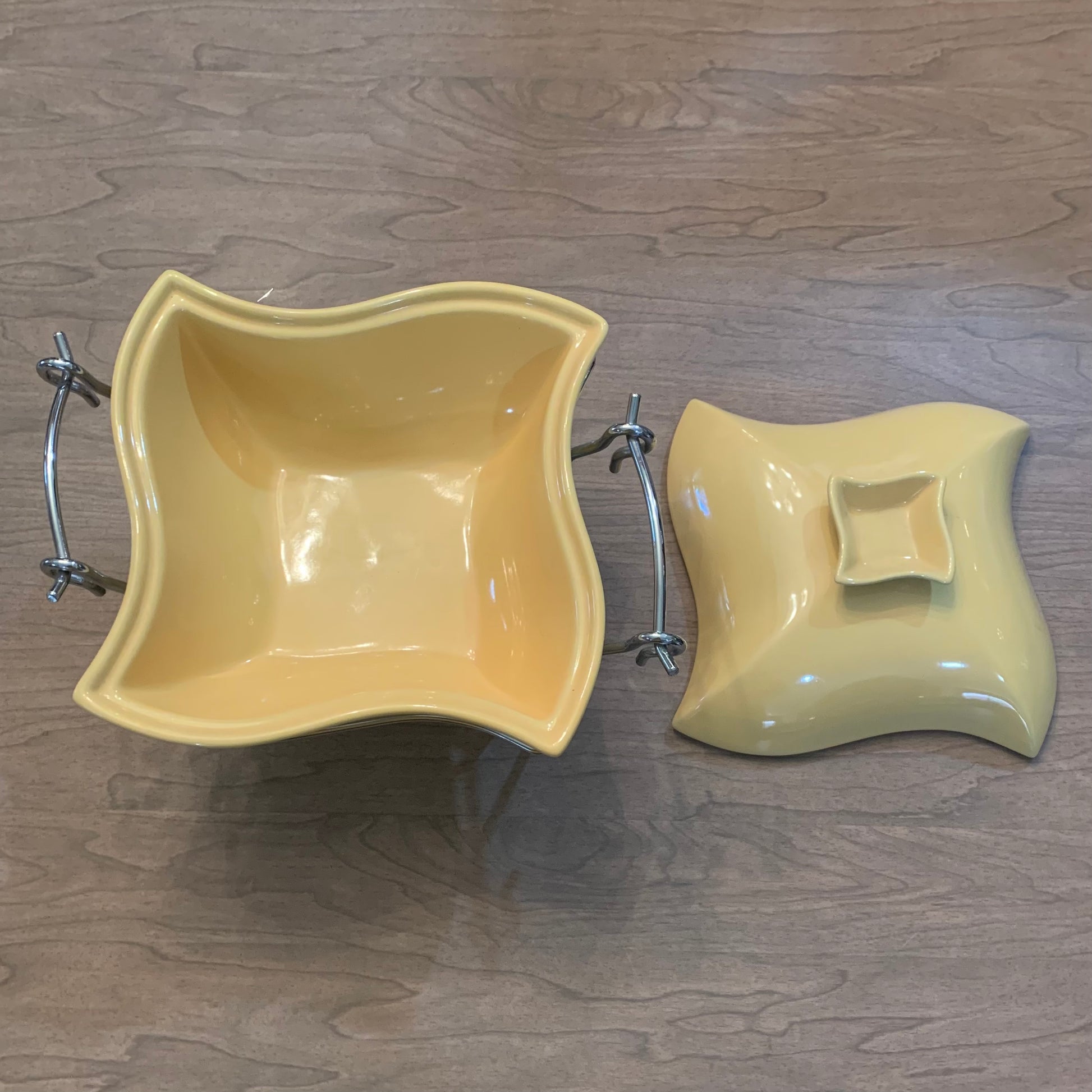 Godinger yellow Porcelain 1 Quart Baker/Chafing Dish with Chrome Warmer Stand