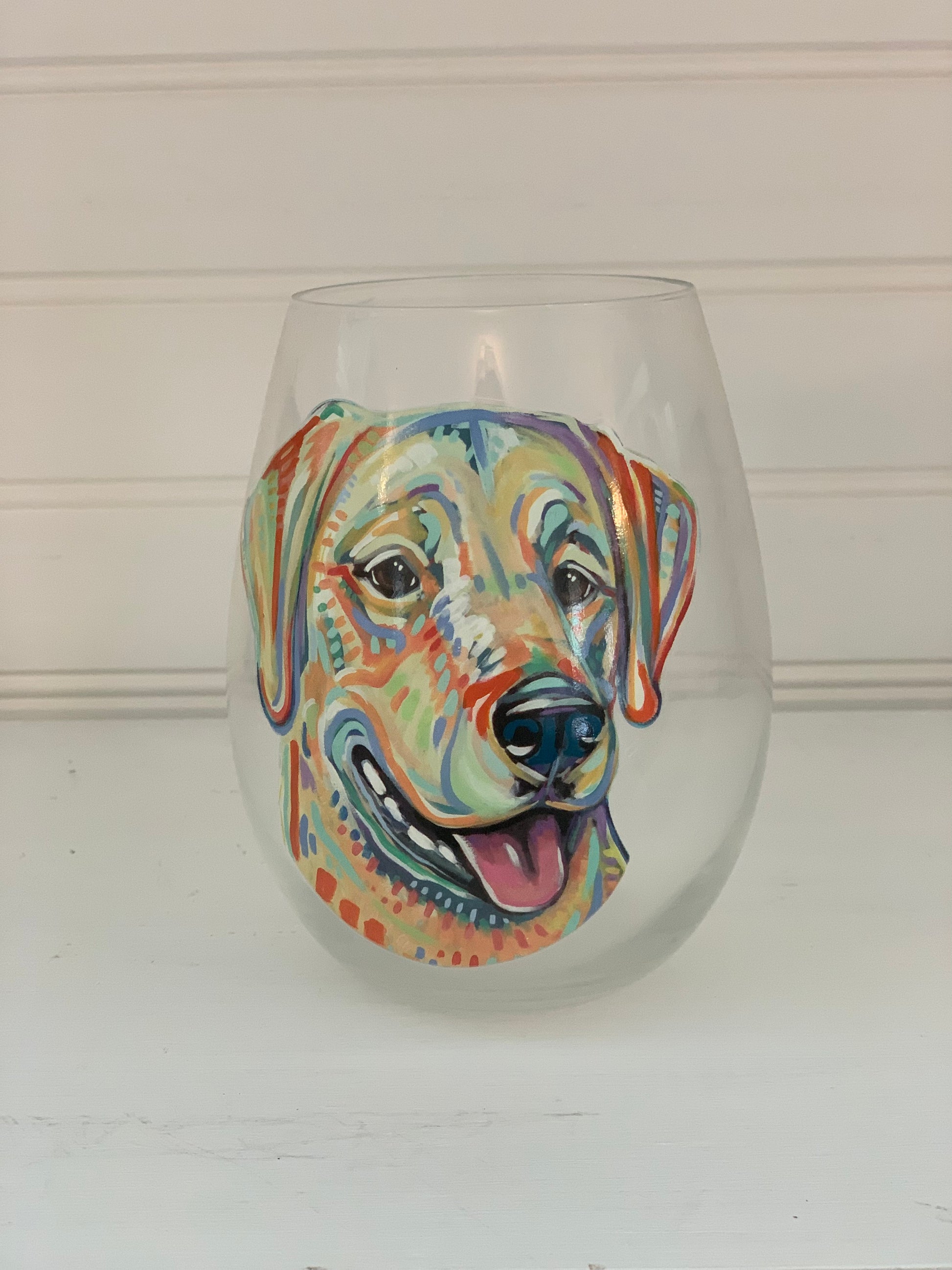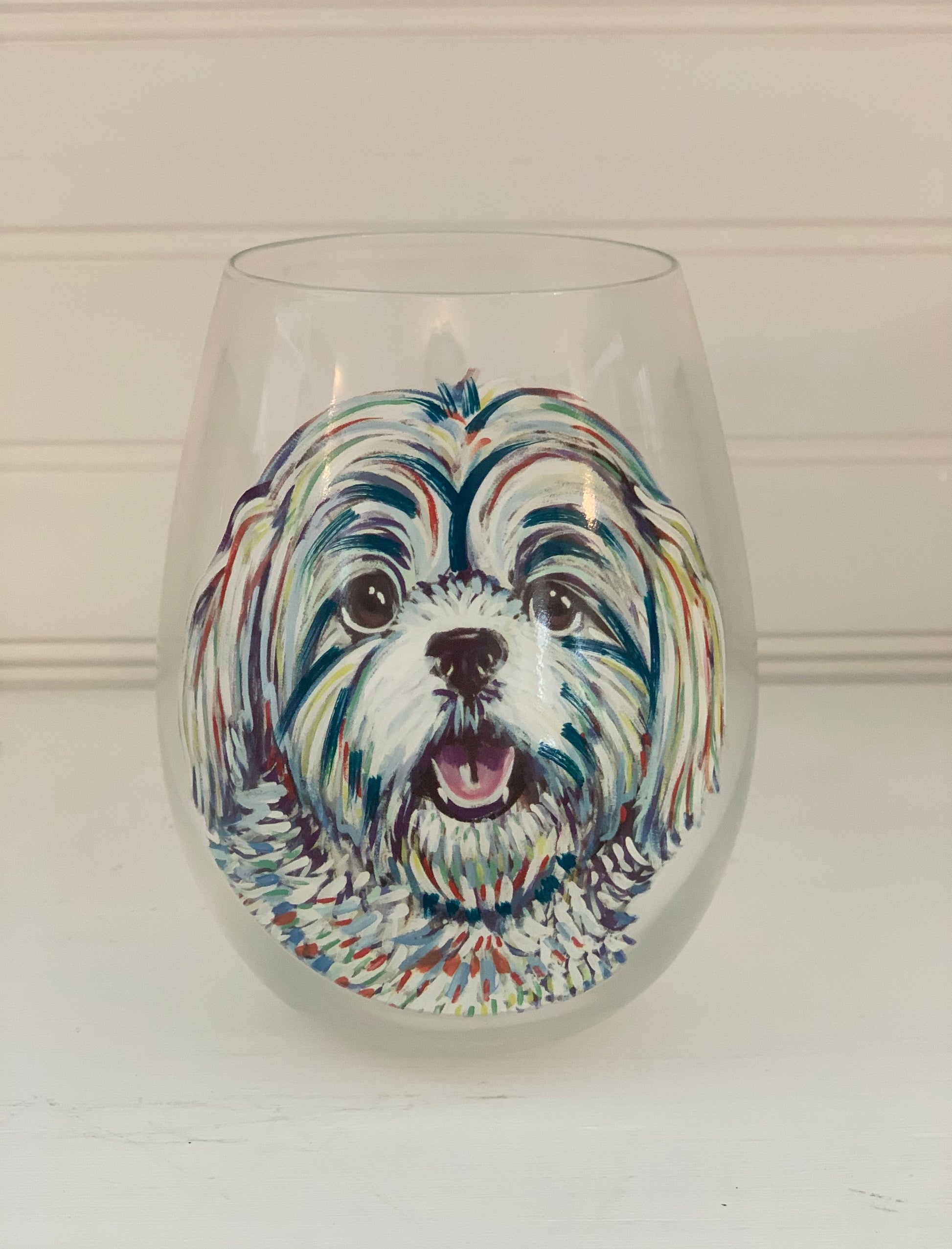 Applied Dog portraits of four popular breeds decorate these playful glasses.